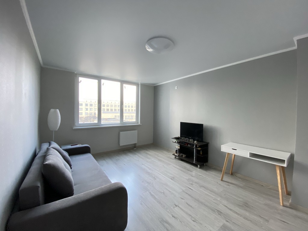 Новый дом постройки 2013года., Квартира очень светлая теплая. Сделан современный ремонт, мебель из качественных материалов, техника. Установлены все счетчики. Большая комната 22,4 квадратных метра. На кухня может стать кухней- студией, достаточно места для лаунж-зоны. Балкон не застеклен- для возможности организации под желание нового собственника - кабинет, продление кухни, лаунжзона для утреннего кофе и приятных вечерних закатов в бокалом вина или... ))