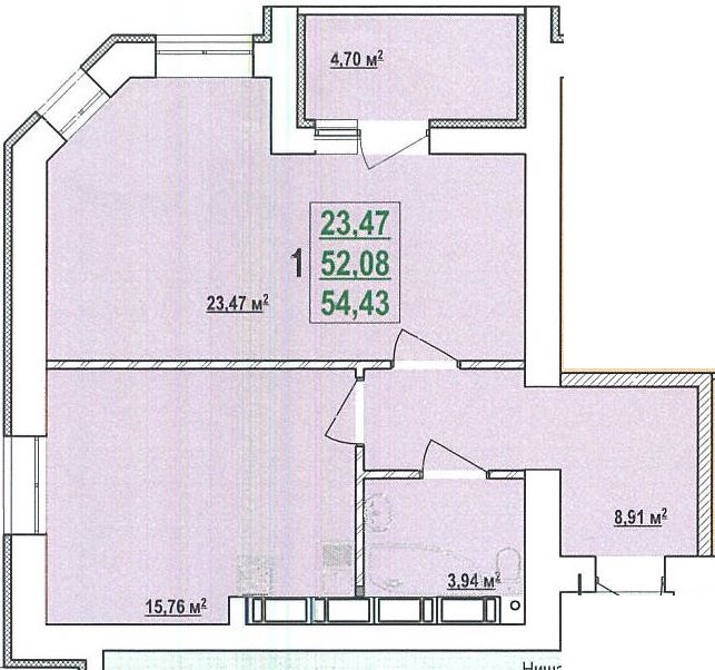 Загальна площа: 54.43 кв.м