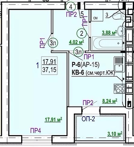 Загальна площа: 37 кв.м