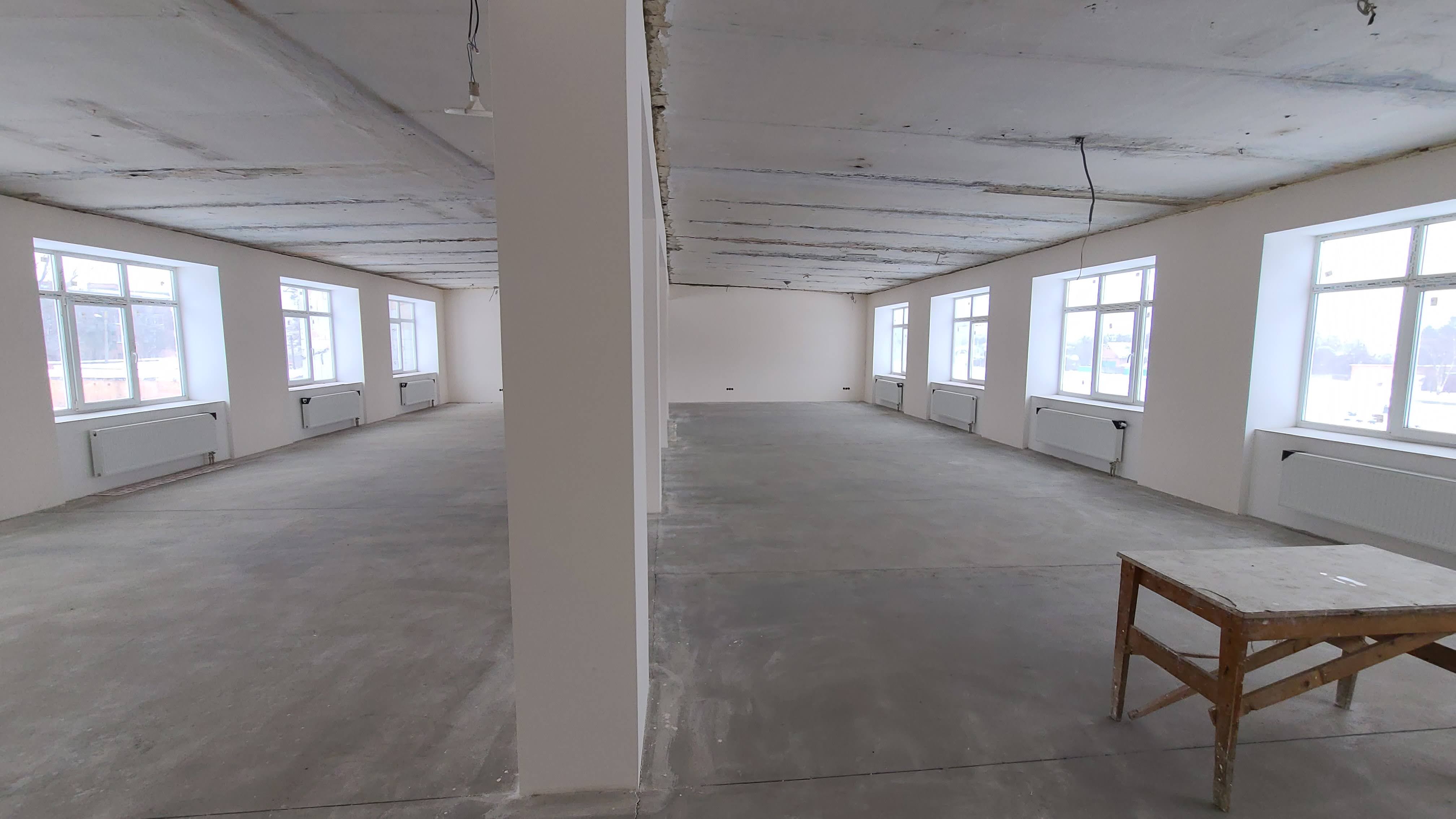 В здании сделаны все универсальные перепланировки помещений, основные черновые работы и прокладка коммуникаций.