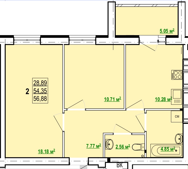 Загальна площа: 57 кв.м