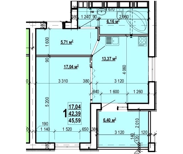 Загальна площа: 45.59 кв.м