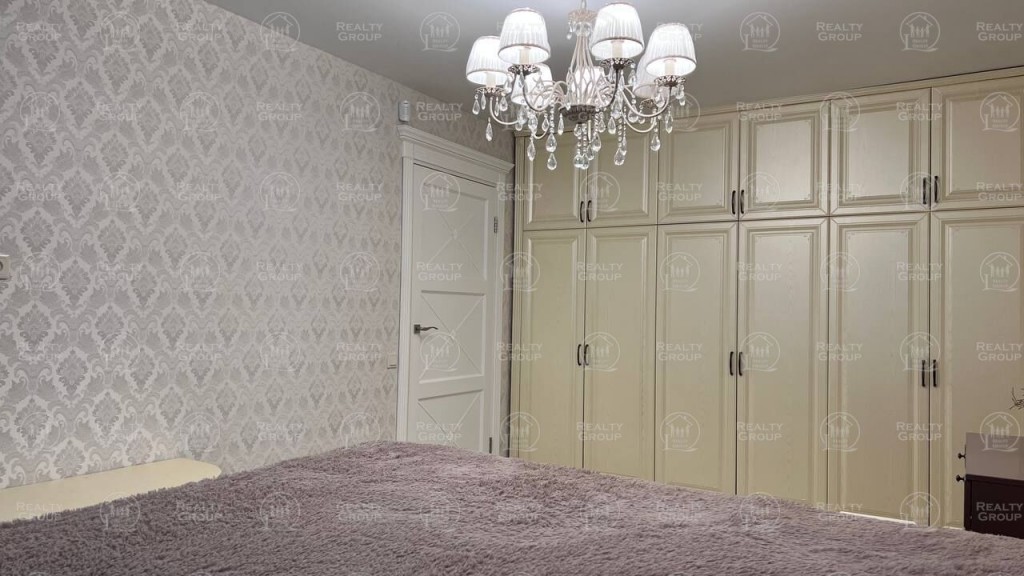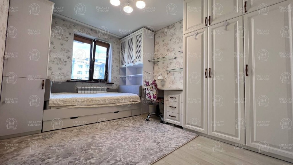 Стены в спальне и детской - флизелиновые (экологические) обои, потолки - натяжные/матовые, на полах постелен белоснежный линолеум, кондиционер зима/лето Vaillant. Изысканный спальный гарнитур с кроватью и встроенная мебель в детской - полностью дополняют задуманный декор. Очень вместительный шкаф-гардеробная, вдоль всей стены.