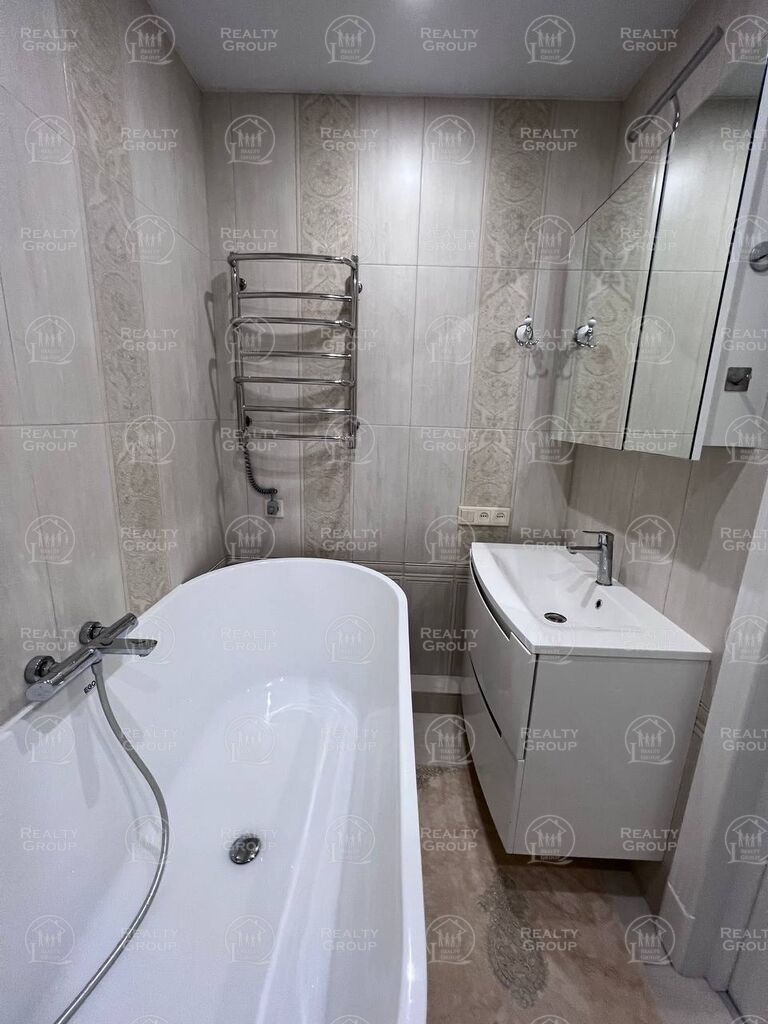 С/у был перепланирован, выложен дорогим кафелем. Унитаз и ванная-купель последних моделей в своей линейке фирмы Ego. Бойлер Аtlantic на 100 литров. Стильная тумба под раковину для ванных принадлежностей.