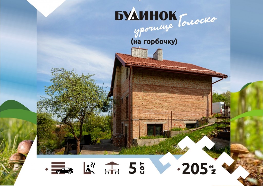 Земельна ділянка 5 соток знаходиться на горбочку в приємному місці з гарним краєвидом. Будинок будувався для себе з дотримання будівельних технологій. Складається з 3-х рівнів: 1. Цоколь-підвал з монолітним бетонним перекриттям: де розміщена відпочинкова зона, кімната з комунікаціями та підвальне приміщення. По периметру будинку розміщені бетонні блоки та зроблено гідроізоляцію; 2. 1-й поверх представляє собою: прихожу, вітальню, кухню, гостьовий санвузол та гараж; 3. 2-й поверх виконаний в мансардному стилі, складається з 3-х окремих кімнат, ванної кімнати з вікном та гардеробної. В будинок заведено 26кВт світла, зроблене опалення, вода постачається з надр землі глибинним насосом, газу немає і не планувалося при будівництві, присутній сучасний камін з розведеними по будинку рукавами, що опалює увесь житловий простір 1-го та 2-го поверху. Дорога до будинку: асфальт та твердий ґрунт. Додатково потрібно буде провести роботи по внутрішньому та зовнішньому оздобленню, підключити водовідведення до центральної мережі або розмістити септик на ділянці, зробити благоустрій території. З відпочинкової зони будинку потрапляємо на терасу з якої відкривається вигляд на садок. Це місце в якому почуваєш себе як в Карпатах не виїжджаючі зі Львова.