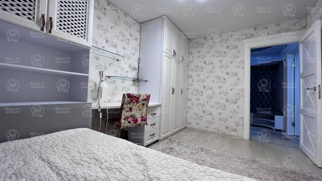 Стіни в спальні та дитячій - флізелінові (екологічні) шпалери, стелі - натяжні/матові, на підлогах постіль білосніжний лінолеум, кондиціонер зима/літо Vaillant. Вишуканий спальний гарнітур з ліжком та вбудовані меблі в дитячому - повністю доповнюють задуманий декор. Дуже містка шафа-гардеробна, вздовж усієї стіни. С/в був перепланований, викладений дорогим кахлем. Унітаз та ванна-купель останніх моделей у своїй лінійці фірми Ego. Бойлер Аtlantic на 100 літрів. Стильна тумба під раковину для ванного приладдя.