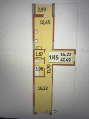 16/17-поверхового монолітно-каркасного будинку. Забудовник Київміськбуд. Планова здача 30.06.2023 р. Загальна площа 47.49 кв.м., житлова 16.22 кв.м., кухня 12.45 кв.м, лоджія, гардербна, суміщений санвузол. Квартира двостороння, виходить у двір.