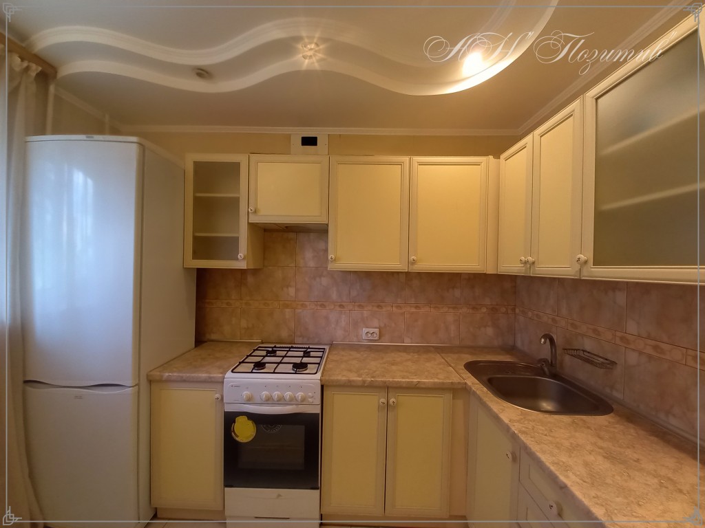 В зручній кухні 8м.кв., залишаються вбудовані меблі, частково техніка.