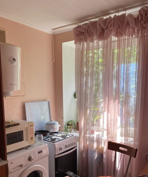Продам 1 кімн. квартиру, Солом’янський, Чоколовка, Повітрофлотський пр-т 74, 1/5 пов. ценляного будинку, S= 32.2/17.1/7.0 кв.м., сан/вузол сумісний (ванна + туалет), кахель, нова сантехніка, бойлер на кухні, склопакети, грати на вікнах, ламінат в кімнаті, кахель (коридор, кухня, сан/вузол), поряд школа, дит.садок, зупинки транспорту, аеропорт “Київ”.