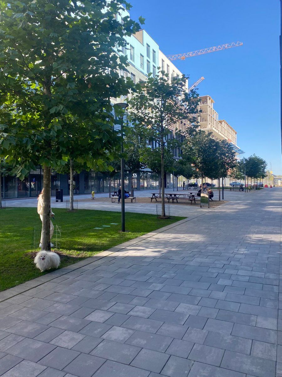 Особенная архитектура, отличается от остальных домов. Фасадная часть дома расположена вдоль RestoPort — это целая улица ресторанов в RYBALSKY. В доме запланирован двухуровневый подземный паркинг для жителей. Ввод в эксплуатацию 3кв.2023г.