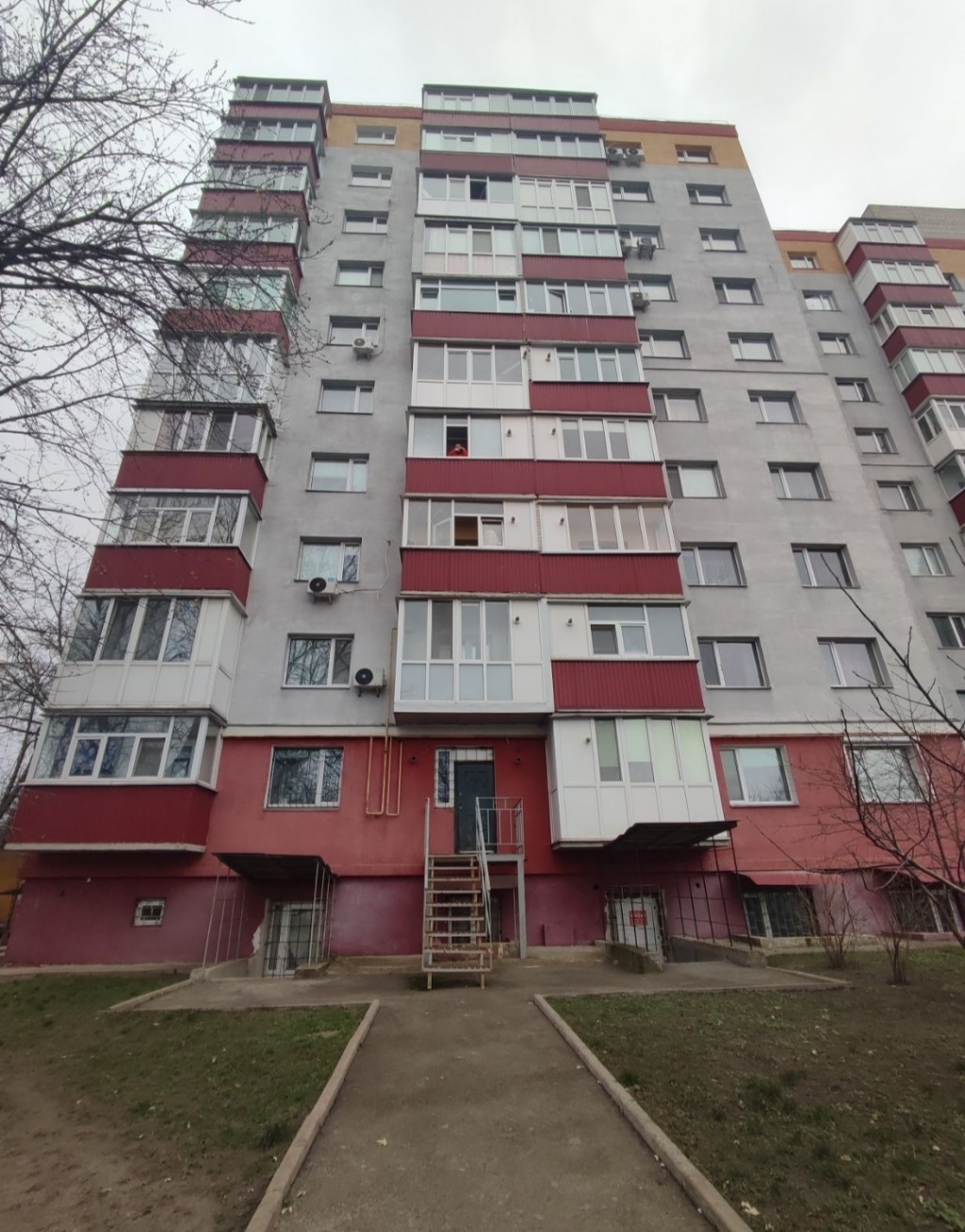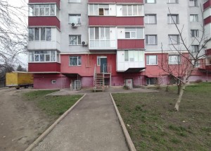 В приміщенні два входи, один з боку під`їзда, інший з фасаду будинку.