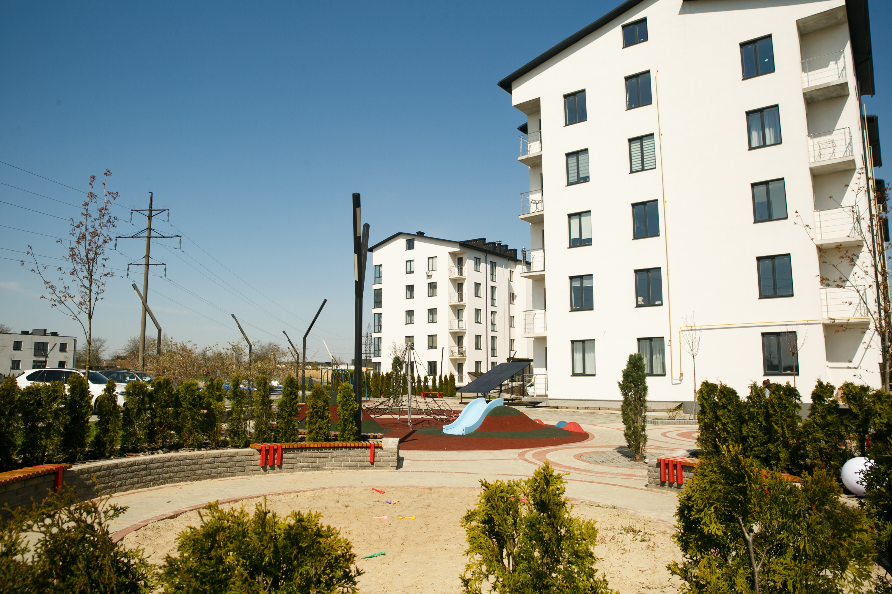 Вдале розташування і хороша транспортна розв'язка дозволяє насолоджуватись природою але завжди залишатись у ритмі міста. Територія в процесі огородження парканом та знаходитися під цілодобовим відеоспостереженням, доступ буде можливий з допомогою магнітних ключів, на території є дитячий майданчик та простора парковка.