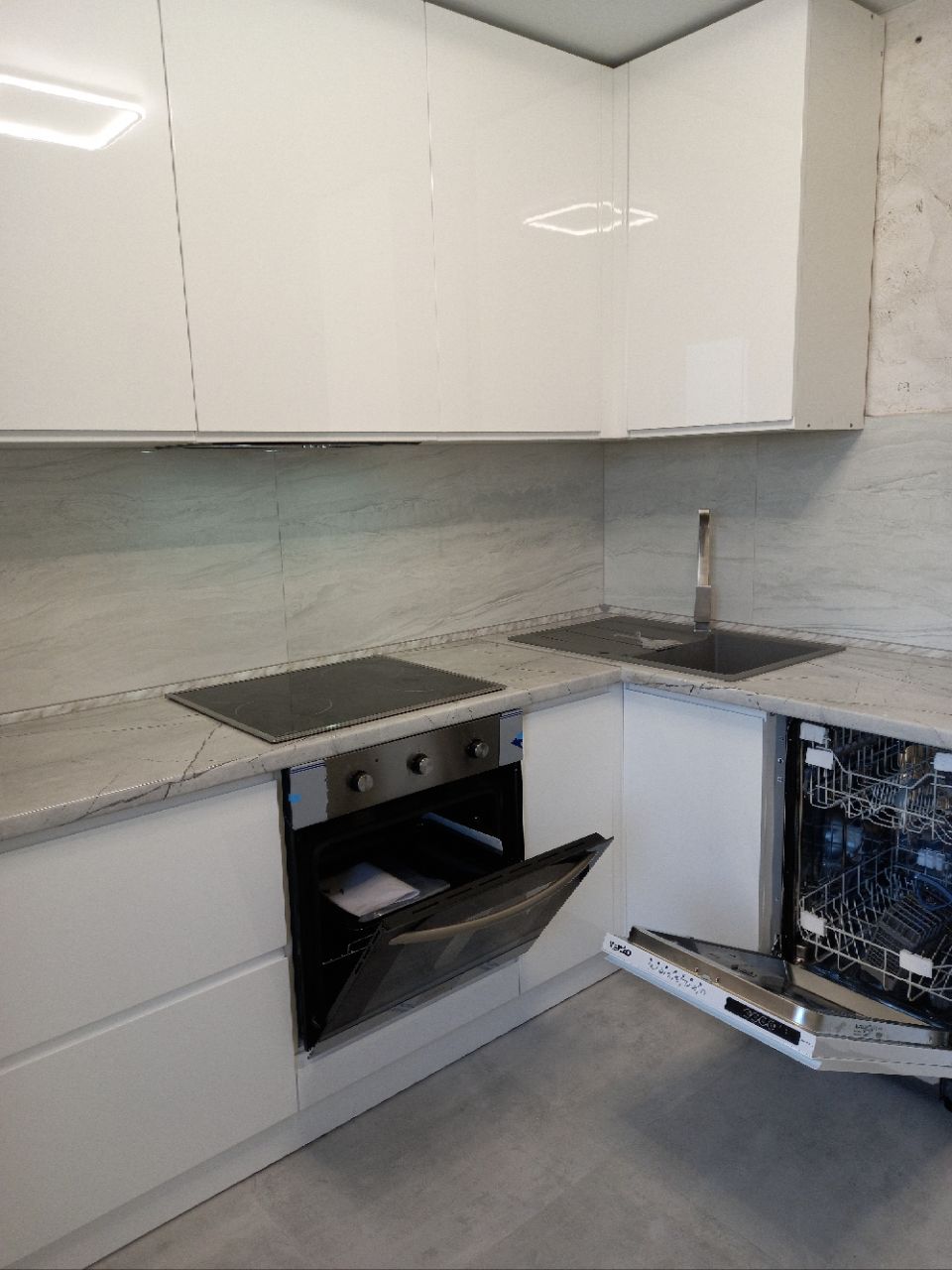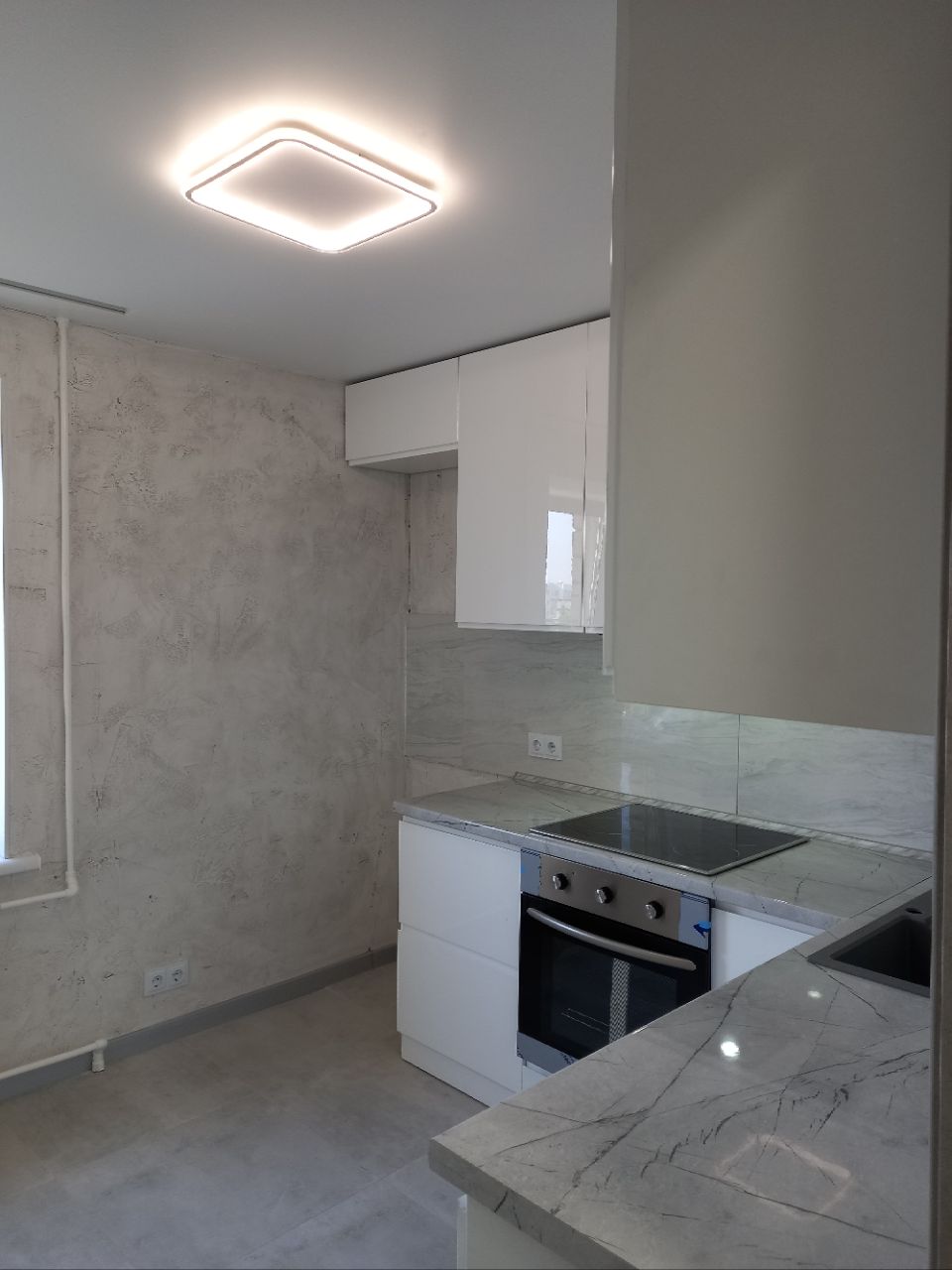 Вмонтована кухня зроблена на замовлення. Техніка вся нова з гарантійним терміном: варильна поверхня, духова шафа, посудомийна машина, кондиціонер.