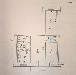3 кімн., площа 64/42/7, поверх 4/9