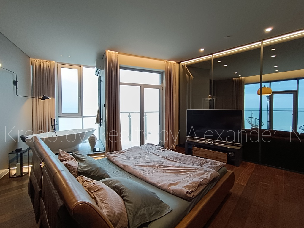 Ванный переулок / пляж на 10-й станции Большого Фонтана, сдам фешенебельную квартиру, расположенную на 10 этаже в новом 12-ти этажном доме премиум-класса ЖК «Миконос» (от строительной компания «Гефест»), общая площадь 88 кв.м, изысканная гостиная с гранитным камином на биотопливе, потрясающая спальня с отдельно стоящей панорамной ванной, два сан. узла, открытая кухня со столовой зоной у окна, два балкона-террасы с шикарным прямым видом на море, эксклюзивный авторский дизайн интерьера в стиле лофт, непревзойденное сочетание игры света, стекла и металла, квартира наполнена невероятным количеством деталей и технических новшеств, создающих комфорт премиального европейского уровня и спроектирована таким образом, что со всех точек и помещений, где бы вы не находились открывается вид на море, полностью укомплектована высококачественной итальянской мебелью и бытовой техникой BOCH, австрийский паркет, встроенные конвекторы в полу, мраморные столешницы, сантехника Victoria & Albert, Villeroy & Bosh и Treme, автоматические шторы с дистанционным управлением, профессиональное освещение Delta и Flos, все абсолютно новое и в идеальном состоянии, в доме ухоженная и охраняемая придомовая территория с выходом в уютный сквер, все автономные коммуникации, есть место для машины в подземном паркинге, уникальная квартира лакшери класса с прямым панорамным видом на море в новом доме на берегу моря в шикарном и красивом современном районе возле пляжа на 10-й станции Большого Фонтана!