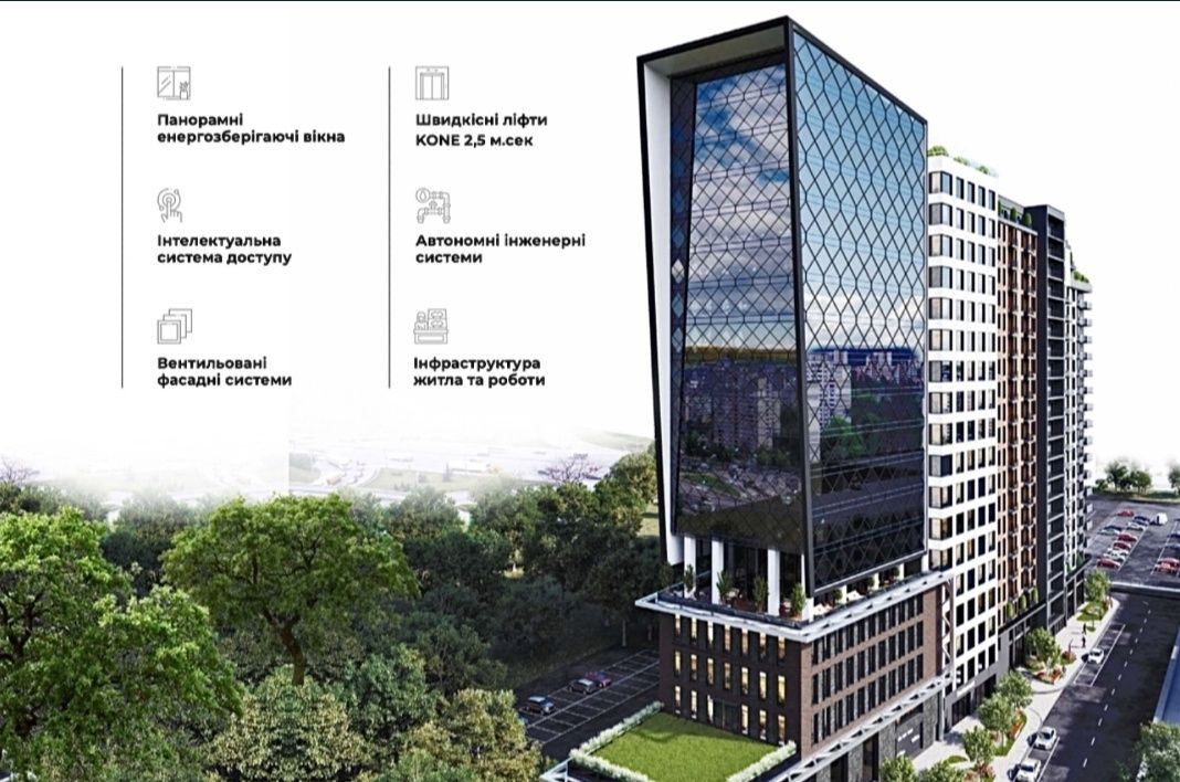 Идея Be the One в совмещении бизнес-недвижимости и жилого пространства 50/50. Секции отличаются и архитектурой: бизнес-центр класса «А» полностью стеклянный, а жилая часть только с панорамными окнами и открытыми балконами.