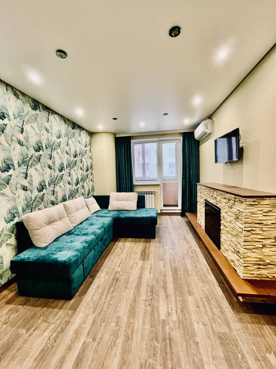 Загальна площа 100,7 кв. м: ізольована кухня - 13 кв.м з виходом на балкон, вітальня з каміном, дитяча, спальня з утепленим балконом, який опалюється (можна облаштувати робочій кабінет), два санвузли (ванна та душкабіна), просторий передпокій, кімната для пральної машини, бойльору та господарських речей.