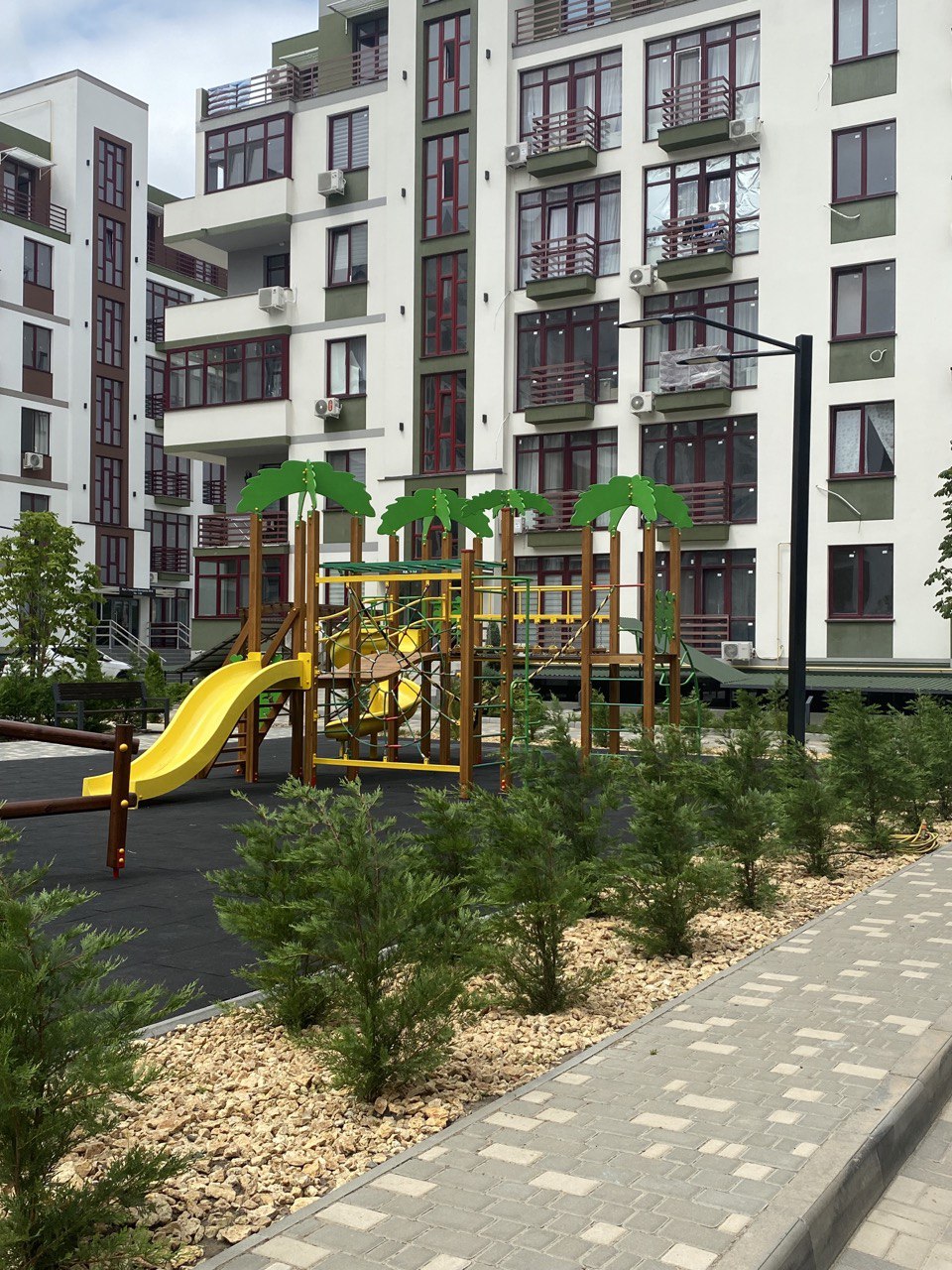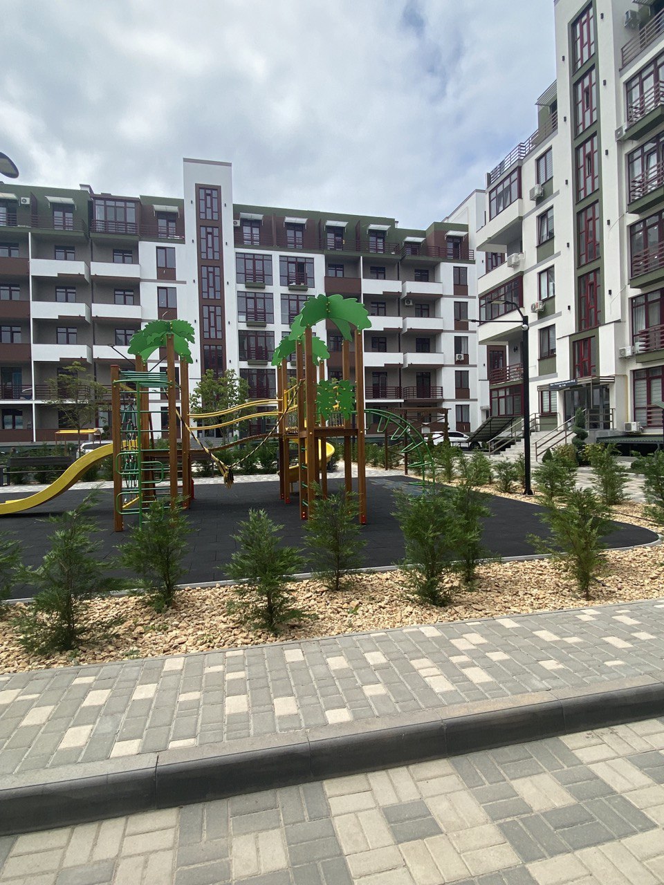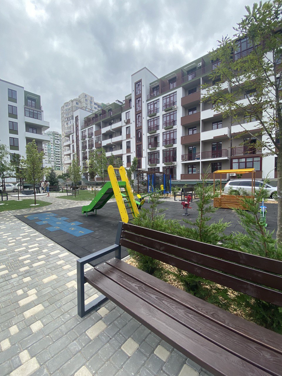 у пішій доступності дитячі садки та школи, торгові центри, ринки, зупинки громадського транспорту. Переваги комплексу: закрита територія, власна охорона, впорядкований двір, з місцями відпочинку та дитячими майданчиками.