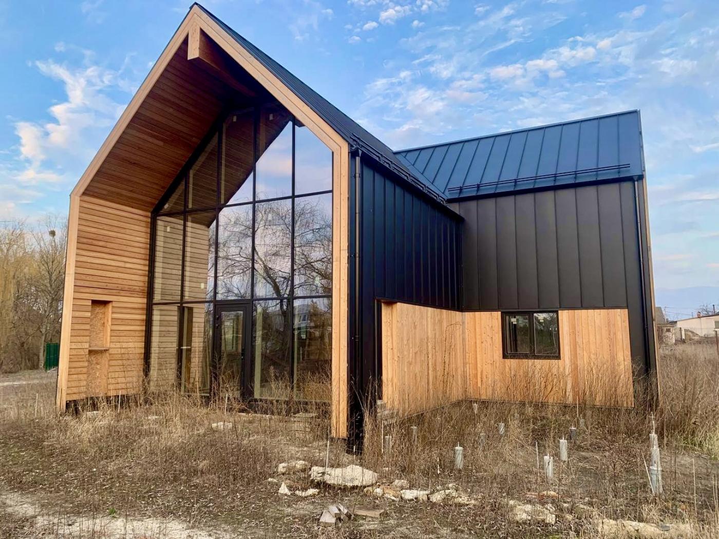 Сучасний екологічний будинок з панорамним світлом, в передмісті Києва с. Вишеньки, біля КМ Золоче Прованс поруч Гнідин, Гора.