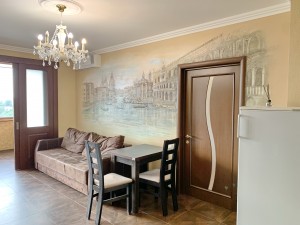 У квартирі є балкон, сучасний ремонт, холодильник, телевізор, меблі, інтернет, кондиціонер.