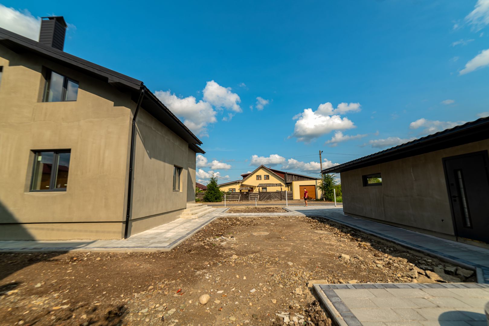 Подвір'я з бруківкою, є можливість проявити творчість як у будинку, так і на ділянці.