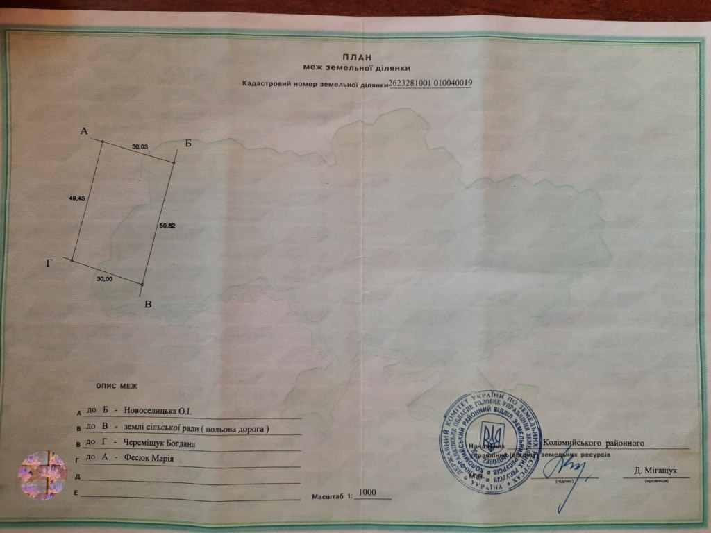 Продається приватизована земельна ділянка в с.Воскресинці, урочище Левади, Коломийської ТГ, Івано-Франківської області.