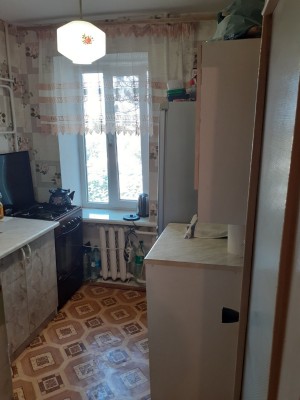 Продам двухкомнатную малогабаритную квартиру на Космонавтов (район рынка стройматериалов) 4/5 эт., кирпич, общая площадь - 32 кв.м., жилая - 21,5 кв.м., кухня - 5 кв.м., комнаты смежные, балкон застеклен мпо, с/у совмещён, колонка. Квартира в жилом состоянии, счётчики (газ, вода, свет).